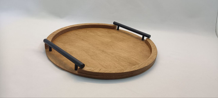 سینی چای چوبی گرد دسته فلزی