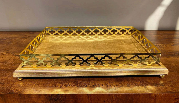 سینی پذیرایی چوب و فلز مستطیل