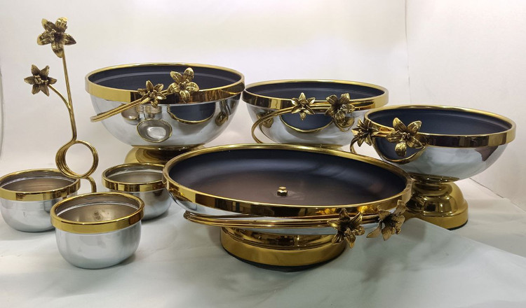 سرویس پذیرایی 5 تیکه فلزی گل برنجی